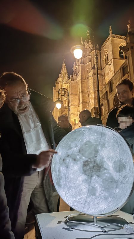 Al evento se acercaron tanto personas que conocían el desarrollo de la actividad (no dejes de visitar nuestras redes sociales para estar al tanto de las novedades) como viandantes que se acercaron con curiosidad a preguntar qué ocurría. En cualquier caso, todos pudieron disfrutar de los telescopios y prismáticos colocados en la plaza, tanto ópticos como electrónicos, con los que se pudo ver Júpiter y sus satélites más notables. Asimismo, una esfera luminosa que representa la Luna mostró a los asistentes todos sus mares y cráteres.