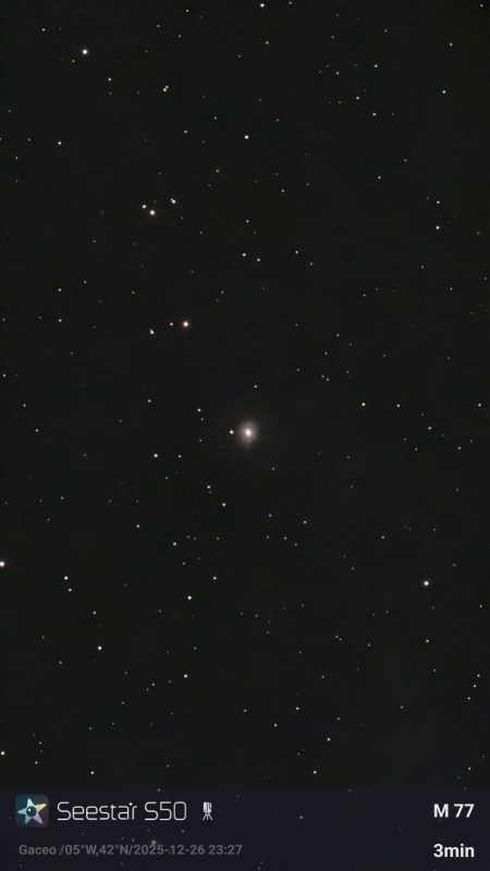 Los objetos del mes de diciembre fueron M 44 (Pléyades, en Tauro), C 5 (la galaxia Oculta, en Camelopardalis), C 67 (galaxia en el Horno), M 77 (galaxia en Cetus) y C 24 (galaxia en Perseo).