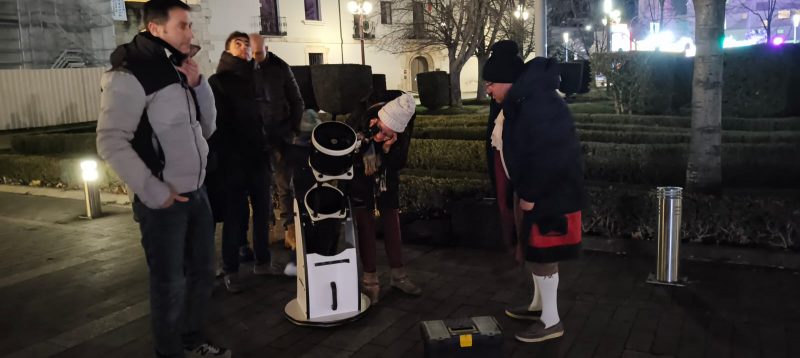 Varios miembros de la ALA se desplazaron el pasado sábado 27 de diciembre a la explanada de la plaza de San Marcos, donde instalaron 2 telescopios, para realizar una sesión de observación lunar y planetaria, en horario de 19:00 a 21:00 horas.