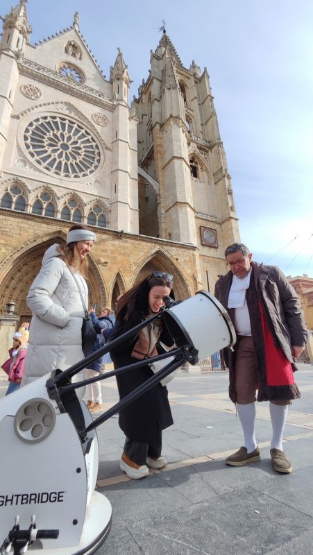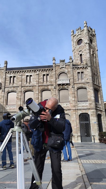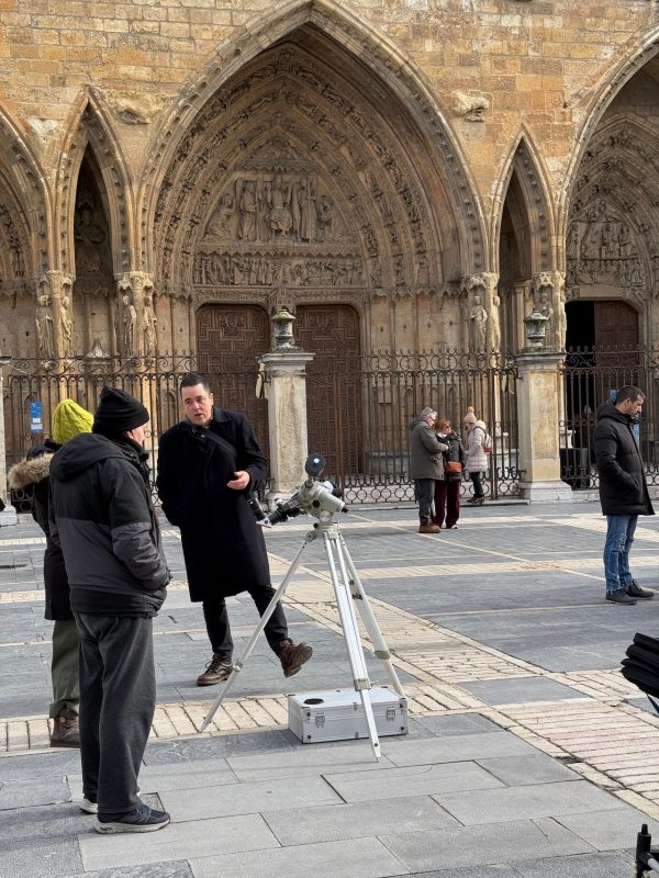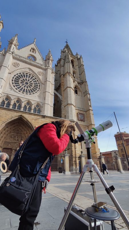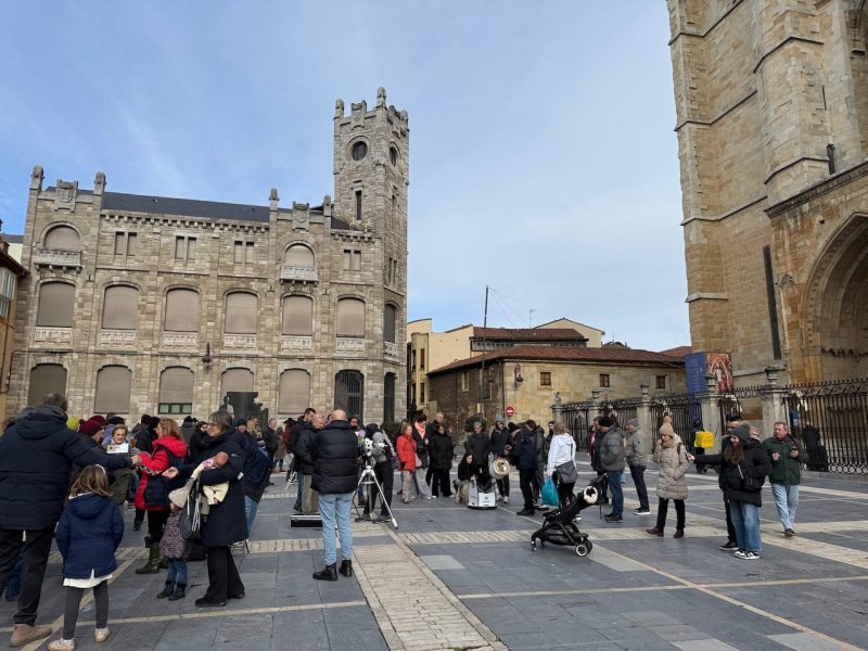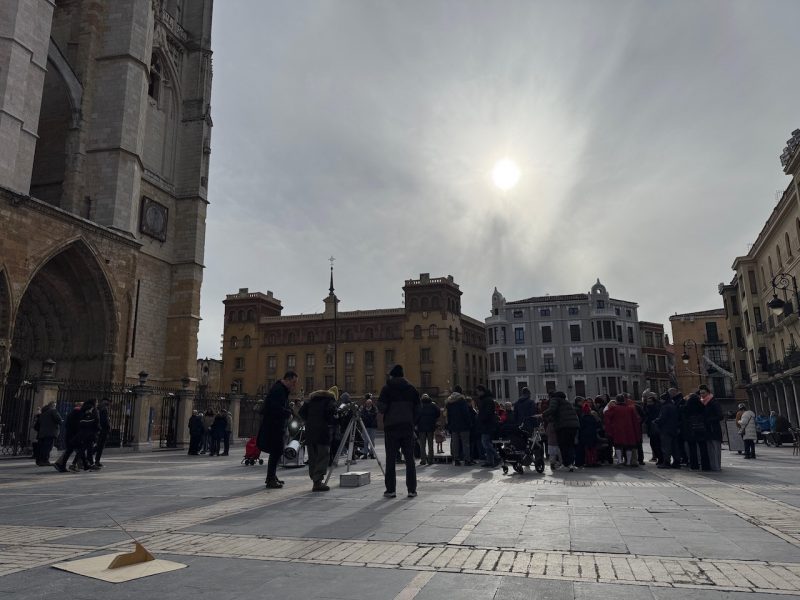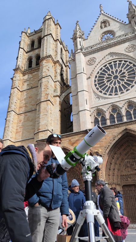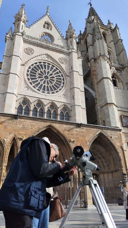 Dentro del programa del 40 aniversario de la Asociación Leonesa de Astronomía, se realizó una observación solar en la plaza de Regla de la capital leonesa, con la catedral de excepcional espectadora.