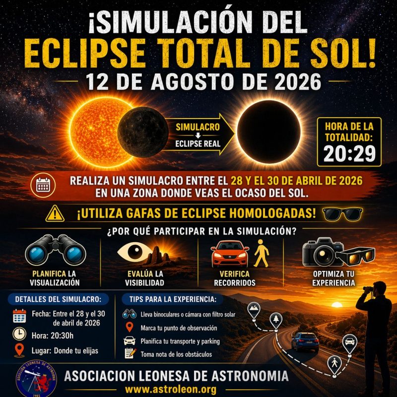 Nos habéis preguntado por la ubicación de la actividad de simulación del eclipse total de sol, pero la asociación no realizará ninguna actividad pública ya que estará buscando los horizontes más propicios para la visualización perfecta de eclipse el día 12 agosto 2026.